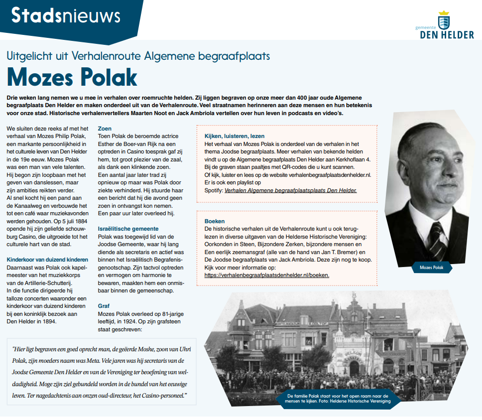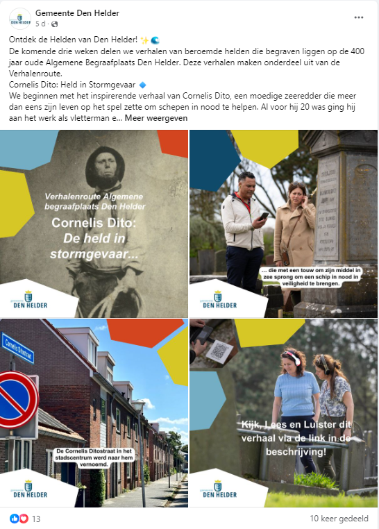 Citymarketing Den Helder is net als wij heel enthousiast over onze Verhalenroute begraafplaats Den Helder. Al die boeiende verhalen over nationale helden als een Dorus Rijkers en de schoonheid van de begraafplaats als wandelpark mogen