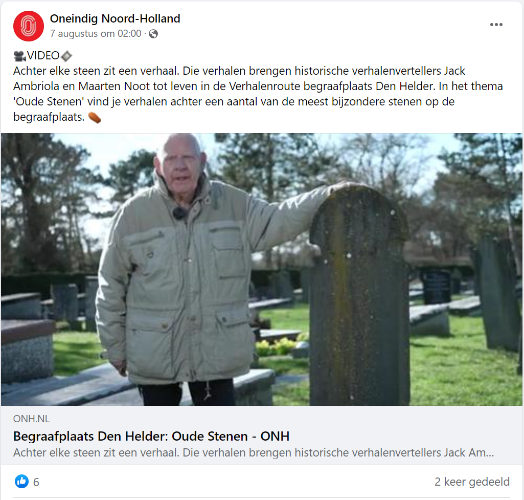 De verhalenroute op de begraafplaats van Den Helder krijgt opnieuw mooie aandacht, dit keer in een uitgebreid artikel van NH Nieuws. Journalist Matthijs Gemmink liep mee over de begraafplaats tijdens de ledenbijeenkomst van de Landelijke