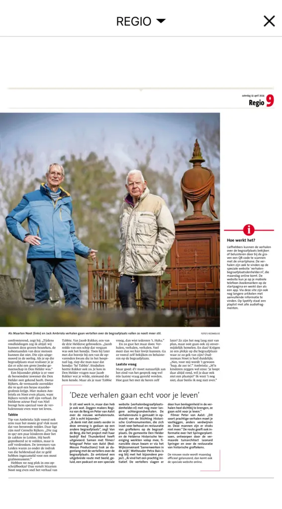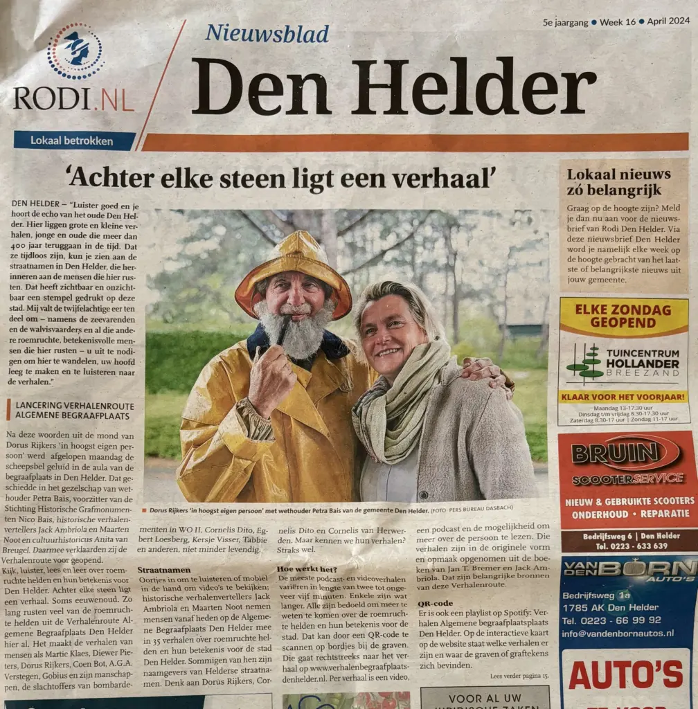 De lancering van de Verhalenroute op 15 april jl., leverde een aantal mooie artikelen en bekendmakingen op. Zo was er een uitgebreid interview met Jack Ambriola en Maarten Noot in het Noordhollands Dagblad van 13 april 2024.