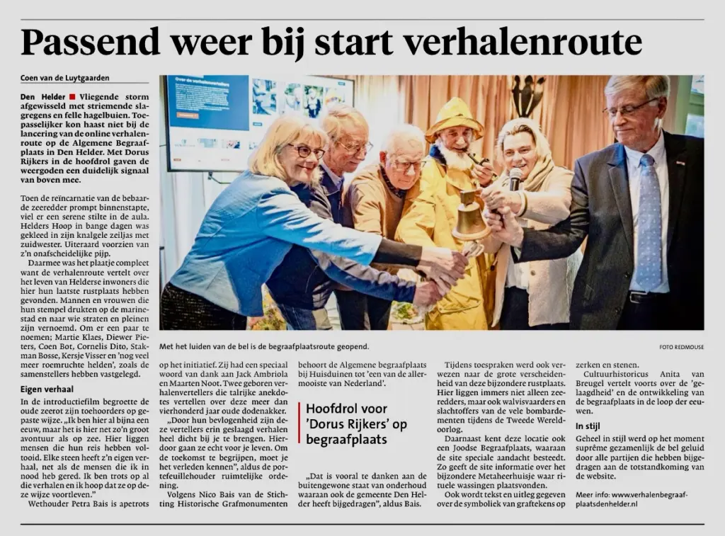 De verhalenroute op de begraafplaats van Den Helder krijgt opnieuw mooie aandacht, dit keer in een uitgebreid artikel van NH Nieuws. Journalist Matthijs Gemmink liep mee over de begraafplaats tijdens de ledenbijeenkomst van de Landelijke