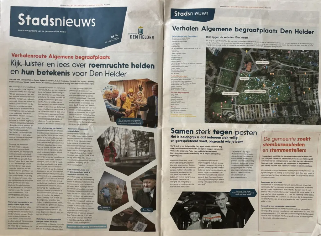 In Stadsnieuws, een pagina van de Gemeente Den Helder in het Helders Nieuwsblad, werd ook uitgebreid aandacht besteed aan de lancering van de Verhalenroute: