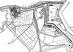 Houtzaagmolen ‘De Goede Verwachting’ aan de fabrieksgracht, gebouwd in 1824, afgebrand in 1897