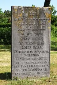 De oudste steen op de Joodse begraafplaats te Huisduinen is die voor Louis (Lev) Boas, kapitein der infanterie en stamt uit 1827. Boas, geboren te Amsterdam, overleed dertig jaar oud aan zijn verwondingen opgelopen bij het verongelukken van ‘Zijner Majesteits Wassenaar’ voor de kust bij Egmond aan Zee in 1827.