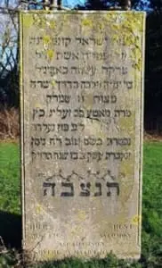 De Hebreeuwse tekst op de monumentale grafsteen luidt: