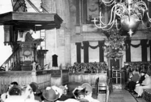 Burgemeester Ritmeester houdt in 1938 een toespraak tegen de Jodenvervolging in de Grote kerk van Alkmaar.